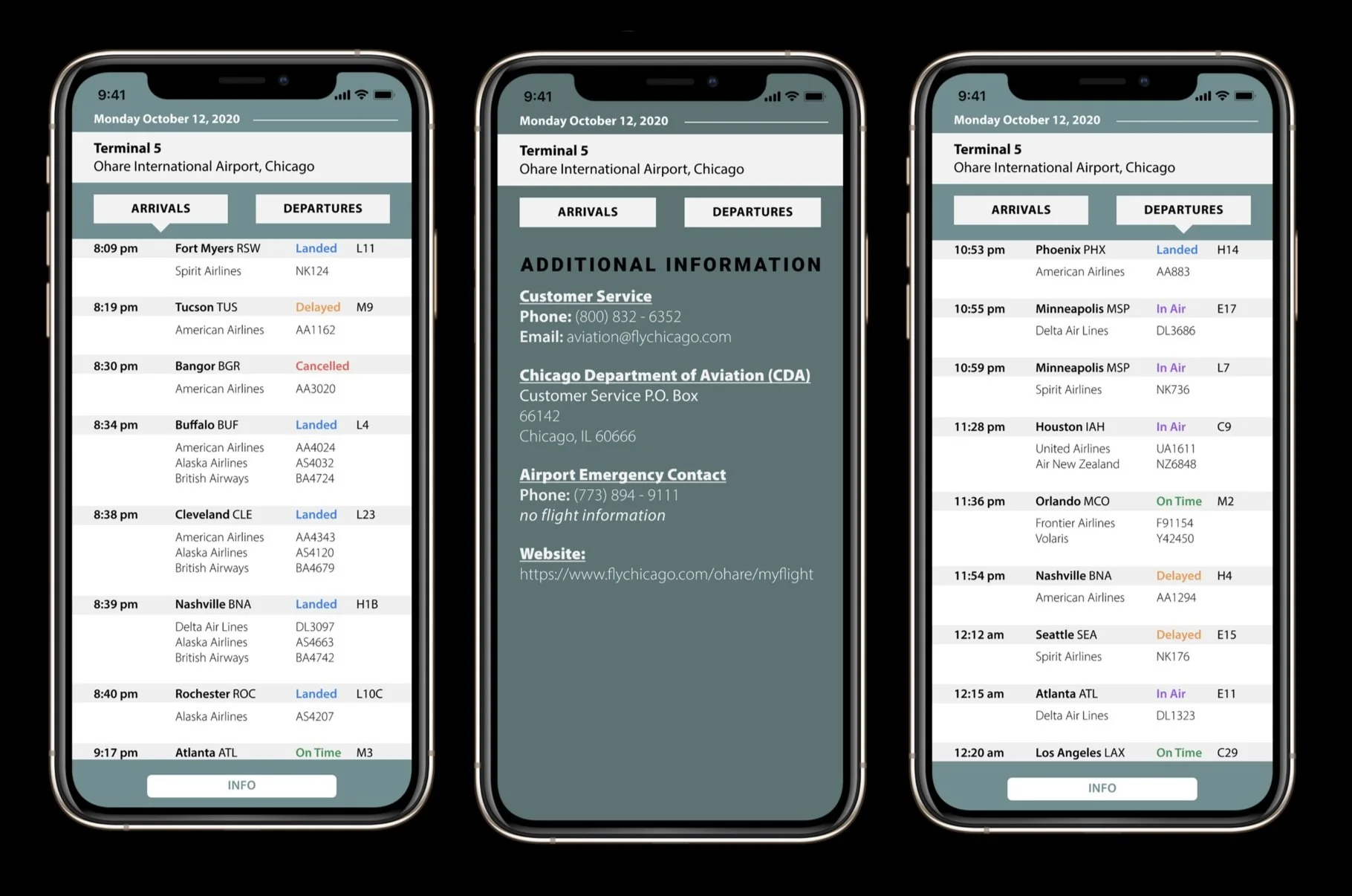 The challenge of this project was to create a universal system to organize information about different airlines, arrival and departure times, gate numbers and destinations.